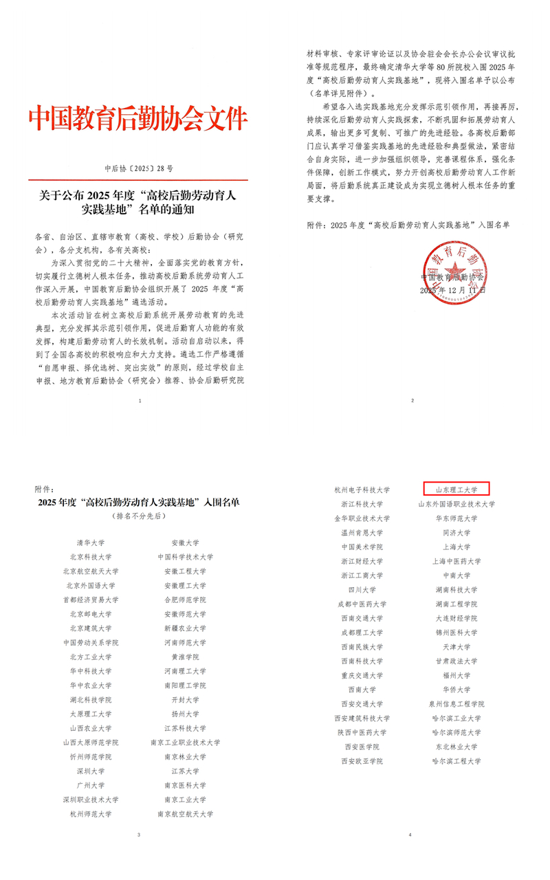 本次入围高校后勤劳动育人实践基地,是学校劳动教育工作的新起点。未来,学校将继续深化后勤物业劳动育人体系建设,优化课程设计、强化师资保障、拓展实践场景,持续发挥示范引领作用,助力新时代“五育”并举,为培养德智体美劳全面发展的时代新人贡献力量。
