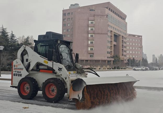 1月19日,校园银装素裹,积雪在带来冬日景色的同时也给师生出行带来不便。交通与车辆工程学院迅速与产学研合作单位——山东锋擎智能装备科技有限公司取得联系。该企业即刻调遣专业除雪设备及人员前往校园,与学校后勤部门协同开展作业,高效推进除雪保畅工作,以实际行动彰显了校企合作的务实成效以及企业的社会责任担当。