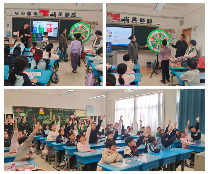 宣讲结束后,趣味互动游戏环节点燃了全场热情,知识宣讲与趣味互动深度融合;工作人员准备了分类卡片、转盘等道具,组织了垃圾分类投放小游戏。孩子们踊跃参与、积极抢答,快速掌握了分类方法,在轻松愉快的氛围中巩固了所学知识。