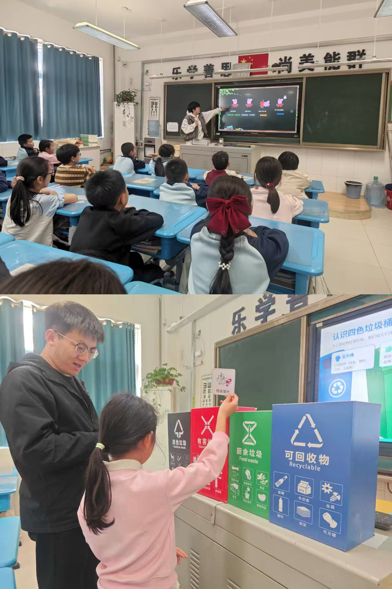 为引导学生树立环保意识,养成垃圾分类的良好习惯,2026年4月1日下午,山东理工大学后勤管理处物业服务中心、环星闪耀社团联合山东联华宝洁公司、张店区综合执法局垃圾分类科,走进凯瑞小学四年级八班,为小学生们带来了一堂生动有趣的环保实践课。